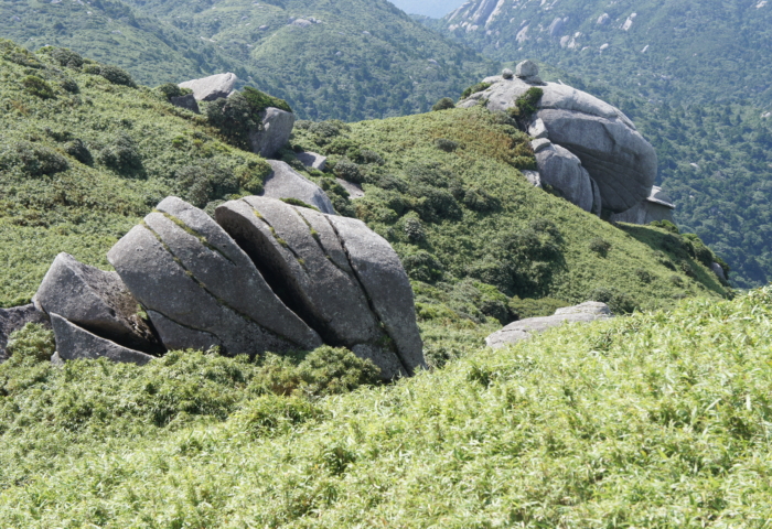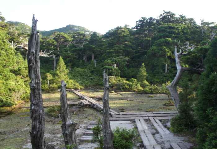 Obwohl die Insel Yakushima nur rund 25 km breit und 25 km lang ist, wimmelt es nur so vor hohen Bergen: Insgesamt gibt es hier 34 Gipfel, die über 1’000 Meter hoch sind. Der höchste Gipfel ist der Miyanoura-dake. “-dake” steht für Gipfel, “Miyanoura” heißt die größte Siedlung von Yakushima im Norden. Mit 1’936 Metern ist dieser Gipfel dabei nicht nur der grösste Berg der Insel, sondern von ganz Kyushu (Kyushu ist eigentlich der Name einer der 4 japanischen Hauptinseln, aber der Name steht auch für die historische Region Kyushu, und dazu zählen auch Yakushima und viele weitere Inseln). Da der Miyanoura-dake ziemlich genau in der Inselmitte liegt und von zahlreichen anderen, hohen Bergen umgeben ist, ist der Gipfel nicht sonderlich prominent – es ist also kein massiver, wuchtiger Berg, der aus dem Nichts ragt.
