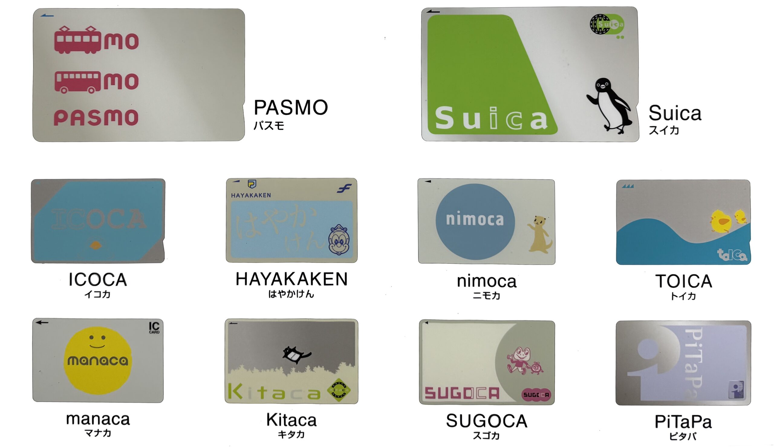 Mit der Suica wurde das alles einfacher: Man lädt einfach Geld rauf, und schon braucht man nie wieder an den Fahrkartenautomaten anstehen und rätseln. Es fiept, man geht durch die Schranke – fertig. Reisen, vor allem im Nahverkehr, wurde mit Suica ein Kinderspiel. Der Name SUICA ist übrigens ein Kofferwort aus すいすい und カード. Und SUICA war anfangs nur für die JR-Bahnen des Großraums Tokyo gedacht – die ganzen anderen Regionen Japans brachten ihre eigenen Karten heraus – mit eigenen Maskottchen und eigenen Namen, wie Kitaca zum Beispiel oder SUGOCA und PiTaPa. Selbst die Metro von Tokyo brachte eigene Karten heraus – die PASMO, mit einem Roboter als Maskottchen.