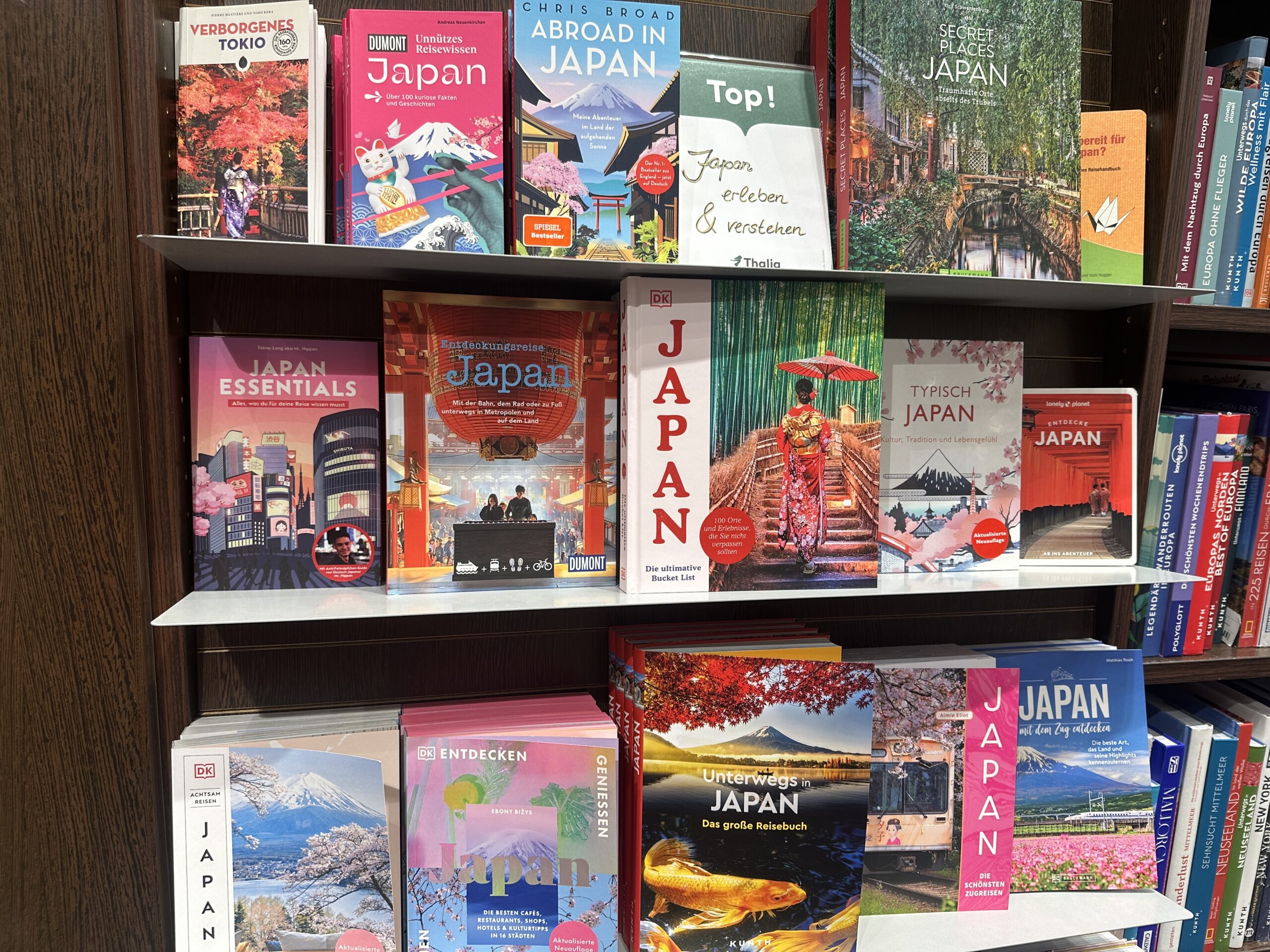 Natürlich habe ich auch ein paar Buchläden besucht, um zu schauen, ob meine Publikationen auch “angemessen” repräsentiert sind. Das sind sie – zumindest in größeren Buchläden, aber es war auch deutlich, dass die Konkurrenz offensichtlich nicht schläft: Die Zahl neuer Japanpublikationen ist enorm.