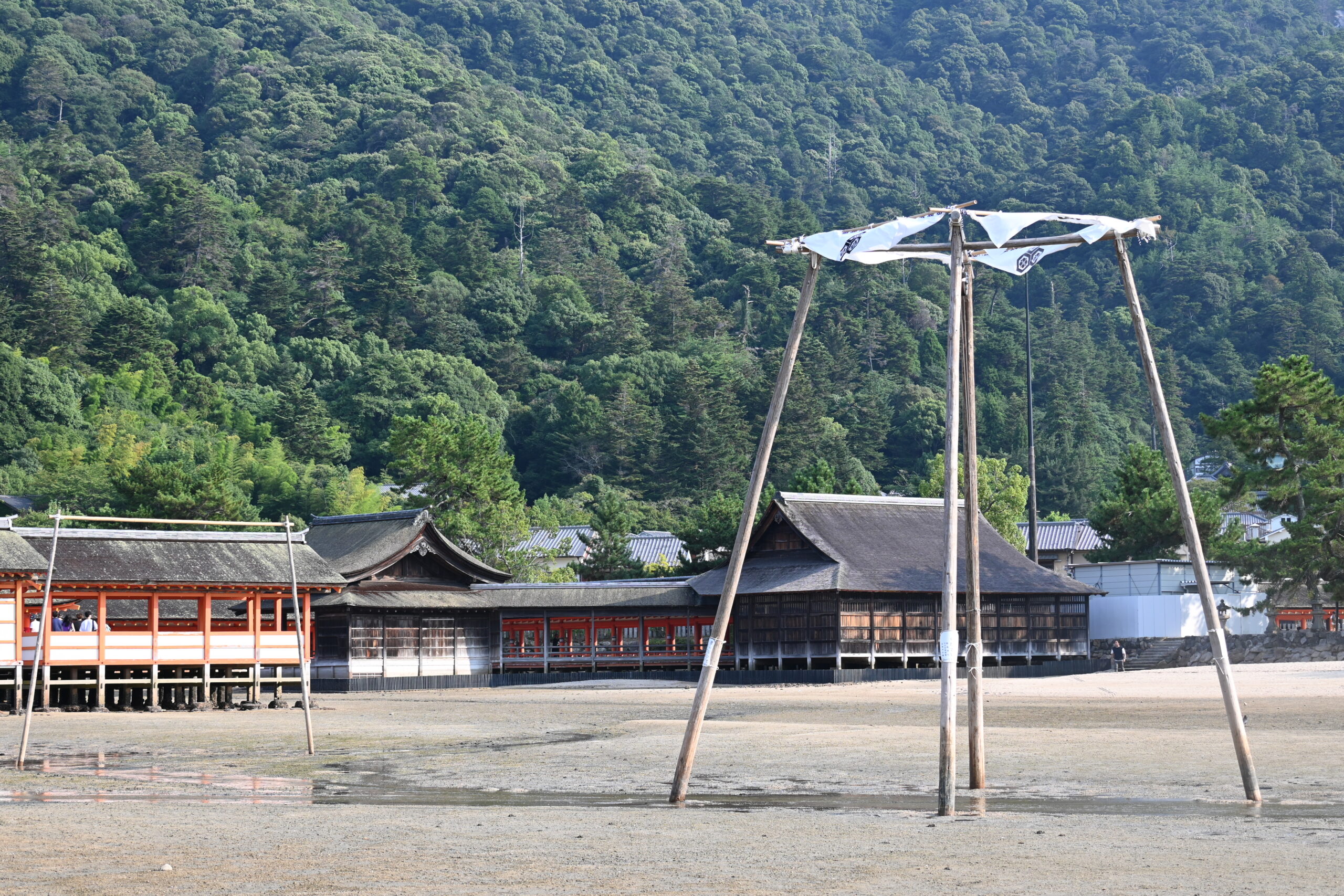 Viele Besucher fahren nach Miyajima, um dort ein Foto vom im Wasser stehenden Schrein zu machen – und sind dann ganz enttäuscht, wenn der Torbogen aus dem Watt ragt und rundherum dutzende Menschen flanieren. Hier lohnt sich vor dem Ausflug zur Insel ein Blick auf den Gezeitenstand, zum Beispiel auf www.miyajima.or.jp/sio/sio12.php#calendar.