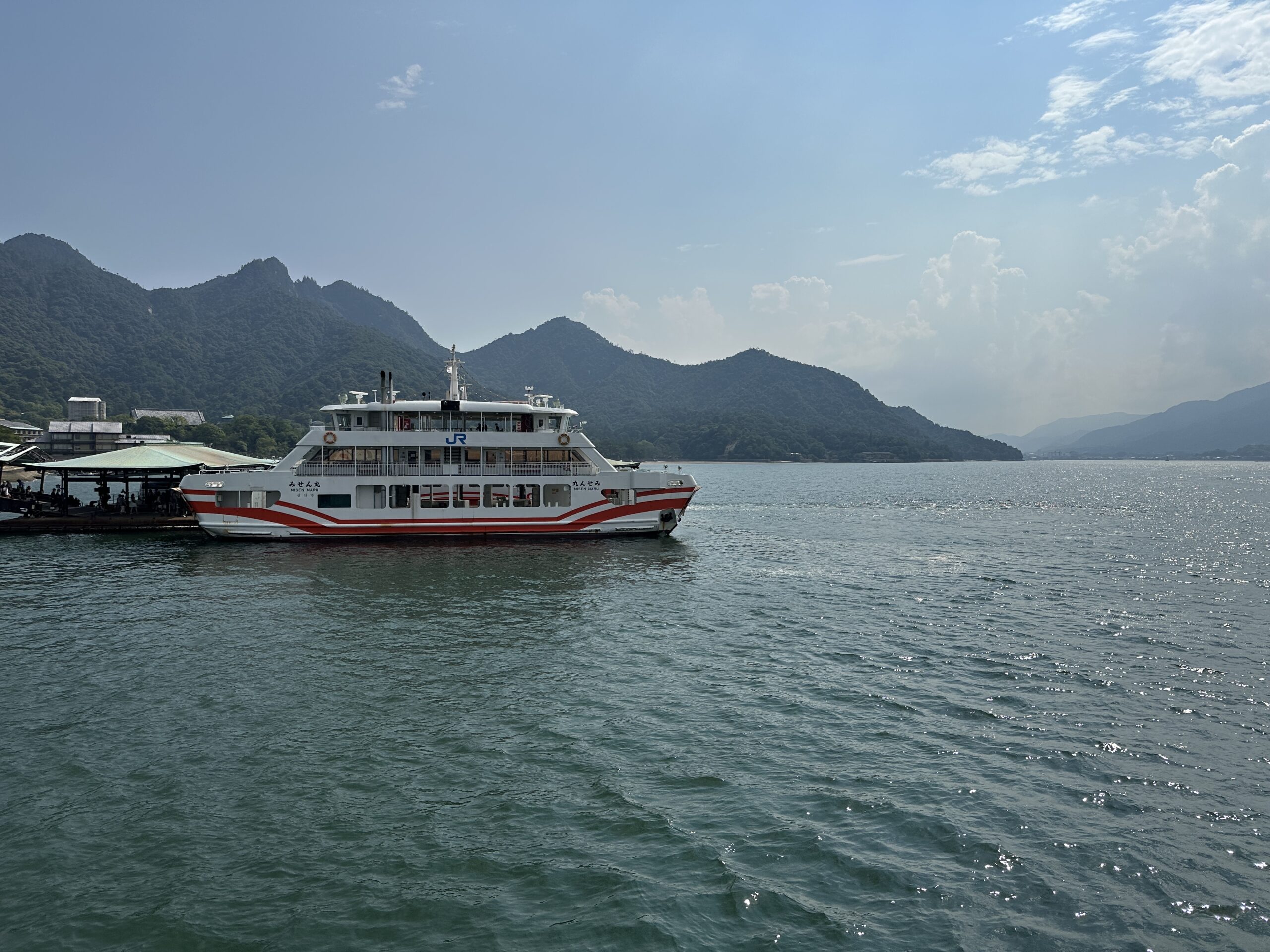 Am billigsten ist es, mit der Strassenbahn (!) von Hiroshima nach Hiroden Miyajima 広電宮島線 zu fahren. Kostet nur 250 ¥, dauert aber fast eine volle Stunde. Schneller geht es mit dem Zug, ebenfalls bis Hiroden Miyajima. Dauert 25 Minuten und kostet 390 ¥, ist aber kostenlos für Railpass-Besitzer. Vom Bahnhof ist es nicht weit zur gut ausgeschilderten Fähranlegestelle. Es operieren zwei Fähren – eine private (500 ¥ für die Hin- und Rückfahrt) und eine für Railpass-Besitzer kostenlose JR-Fähre. Die Überfahrt dauert gerade mal 10 Minuten.