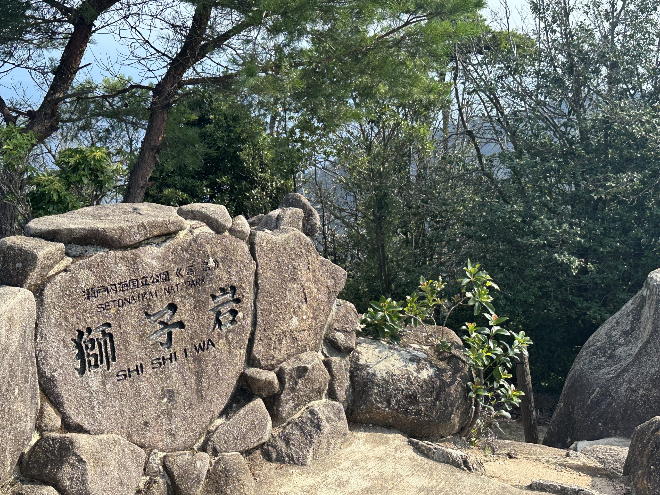 Shishi-Iwa, die Endstation befindet sich bereits auf einer Höhe von 433 Metern – bereits von hier hat man einen wunderbaren Ausblick auf das Meer und die zahlreichen Inseln rund um Itsukushima. Wer genügend Zeit und etwas festes Schuhwerk dabei hat, kann vom Shishi-Iwa bis zum Hauptgipfel des 535 m hohen Berges Misen laufen – unterwegs gibt es ein paar alte Tempel zu sehen, denn die Insel war beziehungsweise ist den Buddhisten ebenfalls sehr wichtig.